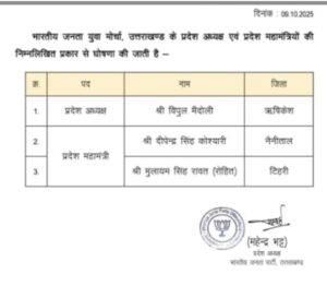 . अब भाजपा व युवा मोर्चा का अध्यक्ष दोनों ऋषिकेश से , महेंद्र भट्ट भी ऋषिकेश के हैं