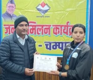 चम्पावत। देहरादून के आमवाला कराटे हॉल में आयोजित उत्तराखंड कप कराटे प्रतियोगिता में जनपद के खिलाड़ियों ने शानदार प्रदर्शन करते हुए कुल 7 पदक (4 स्वर्ण व 3 कांस्य) जीतकर जिले का गौरव बढ़ाया। खिलाड़ियों के इस उत्कृष्ट प्रदर्शन पर जिलाधिकारी श्री मनीष कुमार ने आज जनता मिलन कार्यक्रम के दौरान जिला सभागार में सभी पदक विजेता खिलाड़ियों एवं उनके कोच को सम्मानित किया।