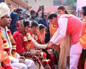 कार्यक्रम में मुख्यमंत्री ने 11 कन्याओं का पूजन किया तथा उन्हें उपहार एवं दक्षिणा भेंट की तथा मुख्यमंत्री ने 06 कन्याओं के सामूहिक विवाह पर उनको शुभकामनाएं एवं आशीर्वाद दिया तथा उनके सुखद जीवन को कमाना की।