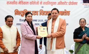 देहरादून। मुख्यमंत्री पुष्कर सिंह धामी ने मंगलवार को मुख्य सेवक सदन, मुख्यमंत्री आवास, देहरादून में आयोजित कार्यक्रम में प्रतिभाग करते हुए चिकित्सा सेवा चयन बोर्ड के माध्यम से चयनित राजकीय मेडिकल कॉलेजों में 142 असिस्टेंट प्रोफेसर्स को नियुक्ति पत्र वितरित किए।